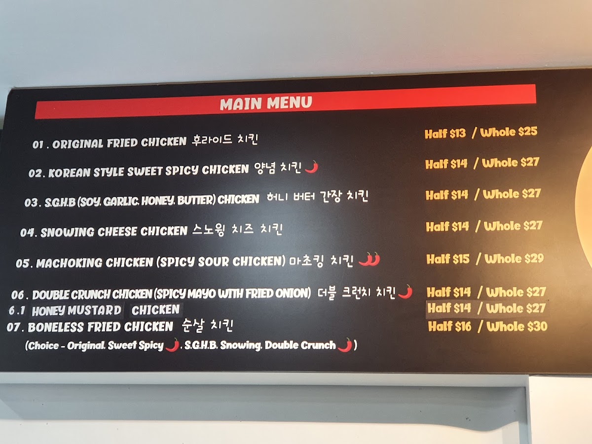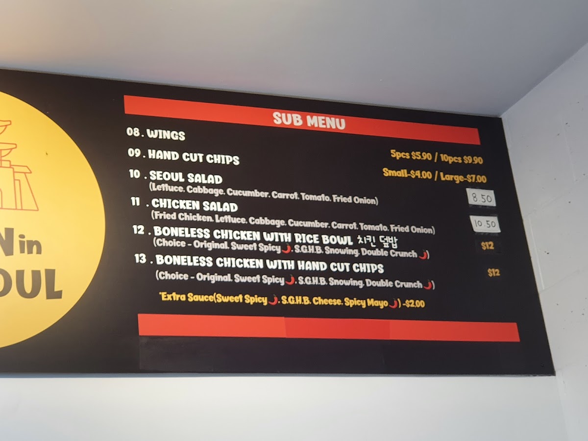 chicken in seoul Menu